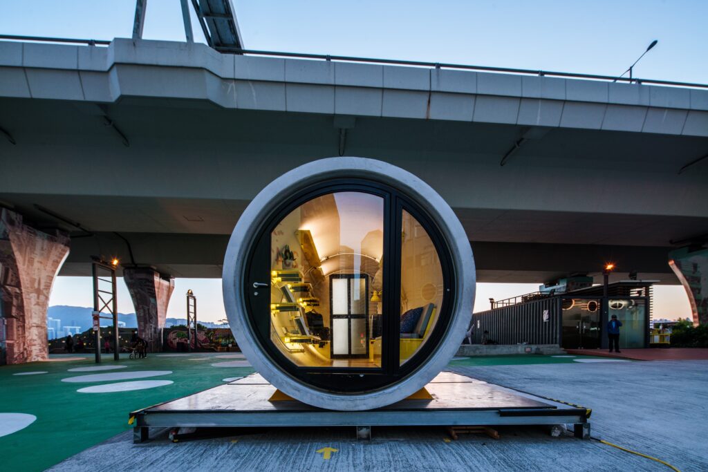 Právě takový je experimentální projekt OPod Tube Housing hongkongského studia James Law Cybertecture. Stěny tvoří potrubní betonová skruž o průměru 2,5 m, ve kterých vznikne bytová jednotka o ploše necelých 10 m2 vhodná pro jednoho až dva obyvatele. Kromě lůžka, stolku, poliček, je tu také kuchyňský pultík, vlastní WC a sprcha. James Law upozornil, že na 10 m2 běžně v Hongkongu žijí tříčlenné rodiny a sociální zařízení standardně sdílí několik pokojů=bytů na chodbě. Microlivingové jednotky OPod Tube Housing je možné sdružovat do menších bytových komplexů a vytvářet z nich modulární komunitu. K jejím výhodám patří i to, že je možné je flexibilně přesouvat. O projekt OPod Tube Housing už projevila zájem samospráva metropole Hong Kong jako jedno z možných řešení tamější bytové krize.